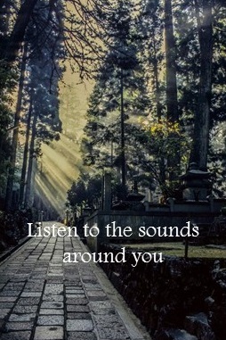Just stop for a few minutes and listen to all the sounds around you. Close your eyes if you wish and listen. Do not interpret the sounds. Just listen. This is to be a pleasant experience so choose the place where you stop not to be overloaded by sounds you do not want to hear. I am talking about sounds and not about voices, so avoid places where there will be conversations going on.