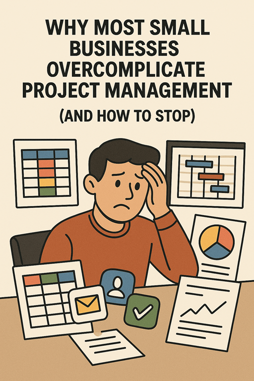 The truth is, most small businesses overcomplicate project management because they’re trying to mimic what big companies do — without needing it. What works in a 200-person department often falls apart in a team of two. Or one.