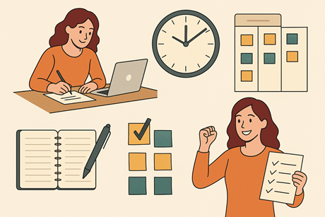 - Track progress visibly. Use a board, a notebook, or sticky notes. Seeing things move to “done” creates momentum.